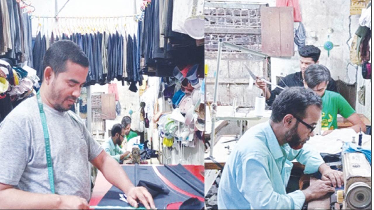 সিরাজগঞ্জে ঈদ উপলে ব্যস্ততা বেড়েছে দর্জি কারিগরদের