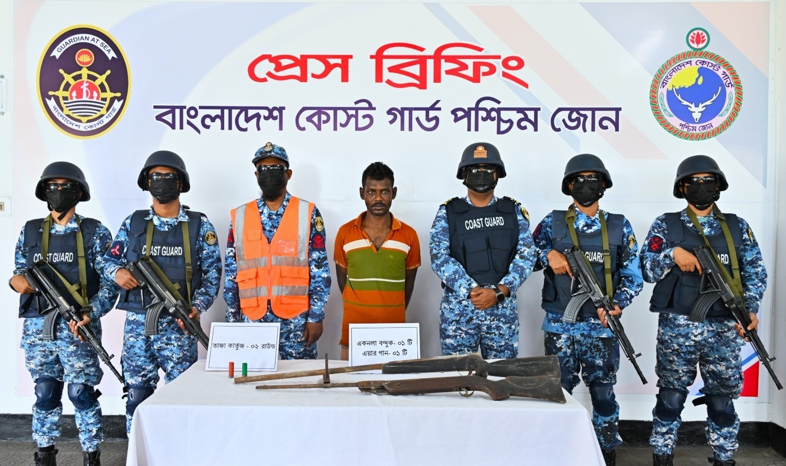 গতকাল মঙ্গলবার সকালে কোস্ট গার্ড মিডিয়া কর্মকর্তা লেফটেন্যান্ট কমান্ডার সাব্বির আলম সুজন এ তথ্য জানান। তিনি বলেন, মাননীয় স্বরাষ্ট্রমন্ত্রীর প্রত্যক্ষ নির্দেশনায় সুন্দরবন অঞ্চলে সক্রিয় সকল বনদস্যুর বিরুদ্ধে বাংলাদেশ কোস্ট গার্ড কঠোর অবস্থানে রয়েছে। এর অংশ হিসেবে কোস্ট গার্ডের নেতৃত্বে “অপারেশন রিস্টোর পিস ইন সুন্দরবন”এবং “অপারেশন ম্যানগ্রোভ শিল্ড” নামে দুটি বিশেষ অভিযান পরিচালিত হচ্ছে। এই অভিযানের ধারাবাহিক সফলতা হিসেবে তৃতীয় বারের মতো “অপারেশন ম্যানগ্রোভ শিল্ড”-এর আওতায় অভিযান পরিচালনা করে দুর্র্ধষ ডাকাত ছোট সুমন বাহিনীর সেকেন্ড ইন কমান্ড কে আটক করা হয়। সুন্দরবনের কুখ্যাত ডাকাত ছোট সুমন বাহিনীর সেকেন্ড ইন কমান্ড সুন্দরবন হতে বাগেরহাটের রামপাল থানাধীন শুকদারা বাজার সংলগ্ন এলাকায় পরিবারের সাথে সাক্ষাতের নিমিত্তে আগমন করার তথ্য জানা যায়। প্রাপ্ত গোপন তথ্যের ভিত্তিতে গত ২০ এপ্রিল ২০২৬ তারিখ সোমবার রাত ১০ টায় কোস্ট গার্ড বেইস মোংলা কর্তৃক উক্ত এলাকায় একটি বিশেষ অভিযান পরিচালনা করে সুন্দরবনের কুখ্যাত ডাকাত ছোট সুমন বাহিনীর সেকেন্ড ইন কমান্ড মোঃ আব্দুস সামাদ মোল্লাকে আটক করা হয়। পরবর্তীতে আটককৃত ডাকাতের তথ্যের ভিত্তিতে, আজ ২১ এপ্রিল ২০২৬ তারিখ মধ্যরাত ২টায় মোংলা থানাধীন সুন্দরবনের নন্দবালা খাল সংলগ্ন এলাকা হতে ১টি একনলা বন্দুক, ১টি এয়ার গান ও ২ রাউন্ড তাজা কার্তুজ উদ্ধার করা হয়।