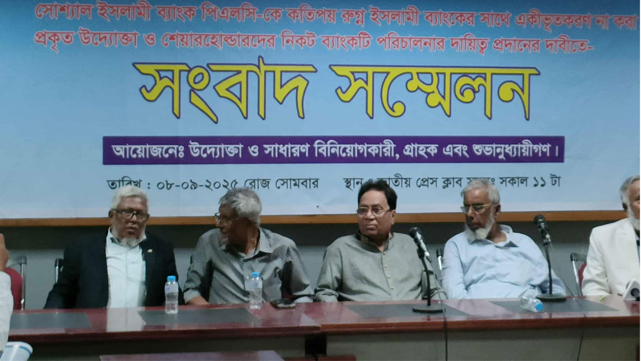 সোশ্যাল ইসলামী ব্যাংককে কতিপয় ইসলামী ব্যাংকের সঙ্গে একীভূত না করে প্রকৃত উদ্যোক্তা ও শেয়ারহোল্ডারদের কাছে ব্যাংকটি পরিচালনার দায়িত্ব দেওয়ার দাবি জানিয়েছেন গ্রাহক ও বিনিয়োগকারীরা। সোমবার (৮ সেপ্টেম্বর) জাতীয় প্রেস ক্লাবে আয়োজিত এক সংবাদ সম্মেলনে লিখিত বক্তব্য পাঠ করেন ব্যাংকটির সাবেক চেয়ারম্যান ডা. মেজর (অব.) এম রেজাউল হক এসময় সাবেক পরিচালক ডা. মো. জাহাঙ্গীর, ব্যাংকটির উদ্যোক্তা চেয়ারম্যান সুলতান মাহমুদ চৌধুরী, সাবেক পরিচালক আসাদুজ্জামান ও শেয়ারহোল্ডার জাবেদ হোসেন প্রমুখ উপস্থিত ছিলেন। সংবাদ সম্মেলনে লিখিত বক্তব্যে তিনি বলেন, ২০১৭ সালে শেখ হাসিনার নির্দেশে সরকারি গোয়েন্দা সংস্থার সহয়তায় অস্ত্রের মুখে এস আলম গ্রুপ ব্যাংকটির উদ্যোক্তা পরিচালক ও অন্যান্য শেয়ারহোল্ডারদের সমন্বয়ে গঠিত পরিচালনা পর্ষদ নিয়ন্ত্রণে নেয়। সোশ্যাল ইসলামী ব্যাংক এস আলম কর্তৃক দখল হওয়ার পূর্ব পর্যন্ত বাংলাদেশের সব শরীয়াহ ব্যাংকগুলোর মধ্যে সর্বদা দ্বিতীয় ব্যাংক হিসেবে পরিগণিত ছিল।