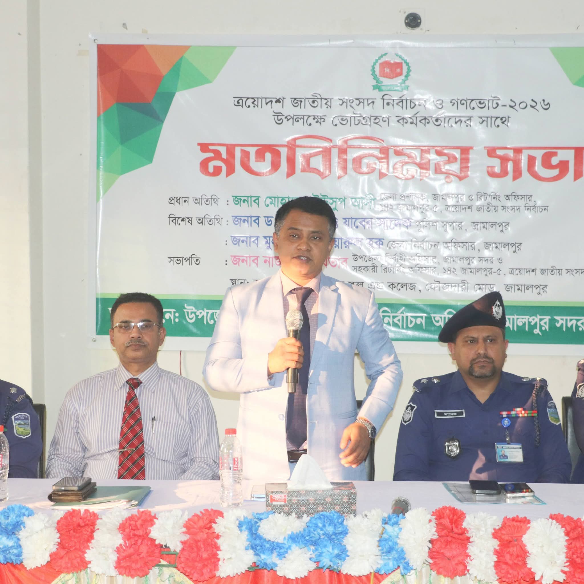 আসন্ন ত্রয়োদশ জাতীয় সংসদ নির্বাচন ও গণভোট–২০২৬ উপলক্ষে ভোটগ্রহণ কর্মকর্তাদের সাথে মতবিনিময় সভা অনুষ্ঠিত হয়েছে। গত ৩ ফেব্রুয়ারী মঙ্গলবার উপজেলা প্রশাসন ও উপজেলা নির্বাচন অফিস, জামালপুর সদর কর্তৃক আয়োজিত ফৌজদারি মোড়, জামালপুর আইডিয়াল স্কুল এন্ড কলেজ ভেন্যুতে এ সভা অনুষ্ঠিত হয়। মতবিনিময় সভায় প্রধান অতিথি হিসেবে উপস্থিত ছিলেন জনাব মোহাম্মদ ইউসুপ আলী, জেলা প্রশাসক ও রিটার্নিং অফিসার, জামালপুর। বিশেষ অতিথি হিসেবে উপস্থিত ছিলেন জনাব ড. চৌধুরী মোঃ যাবের সাদেক, পুলিশ সুপার, জামালপুর; জনাব মুহাম্মদ আনোয়ারুল হক, জেলা নির্বাচন অফিসার, জামালপুর। সভায় সভাপতিত্ব করেন জনাব নাজনীন আখতার, উপজেলা নির্বাহী অফিসার ও সহকারী রিটার্নিং অফিসার, জামালপুর সদর। এসময় সভায় আরও উপস্থিত ছিলেন অতিরিক্ত পুলিশ সুপার জনাব ইয়াহিয়া আল মামুন (সদর সার্কেল),জামালপুর এবং জনাব মোঃ মিজানুর রহমান, অফিসার ইনচার্জ, জামালপুর থানা।