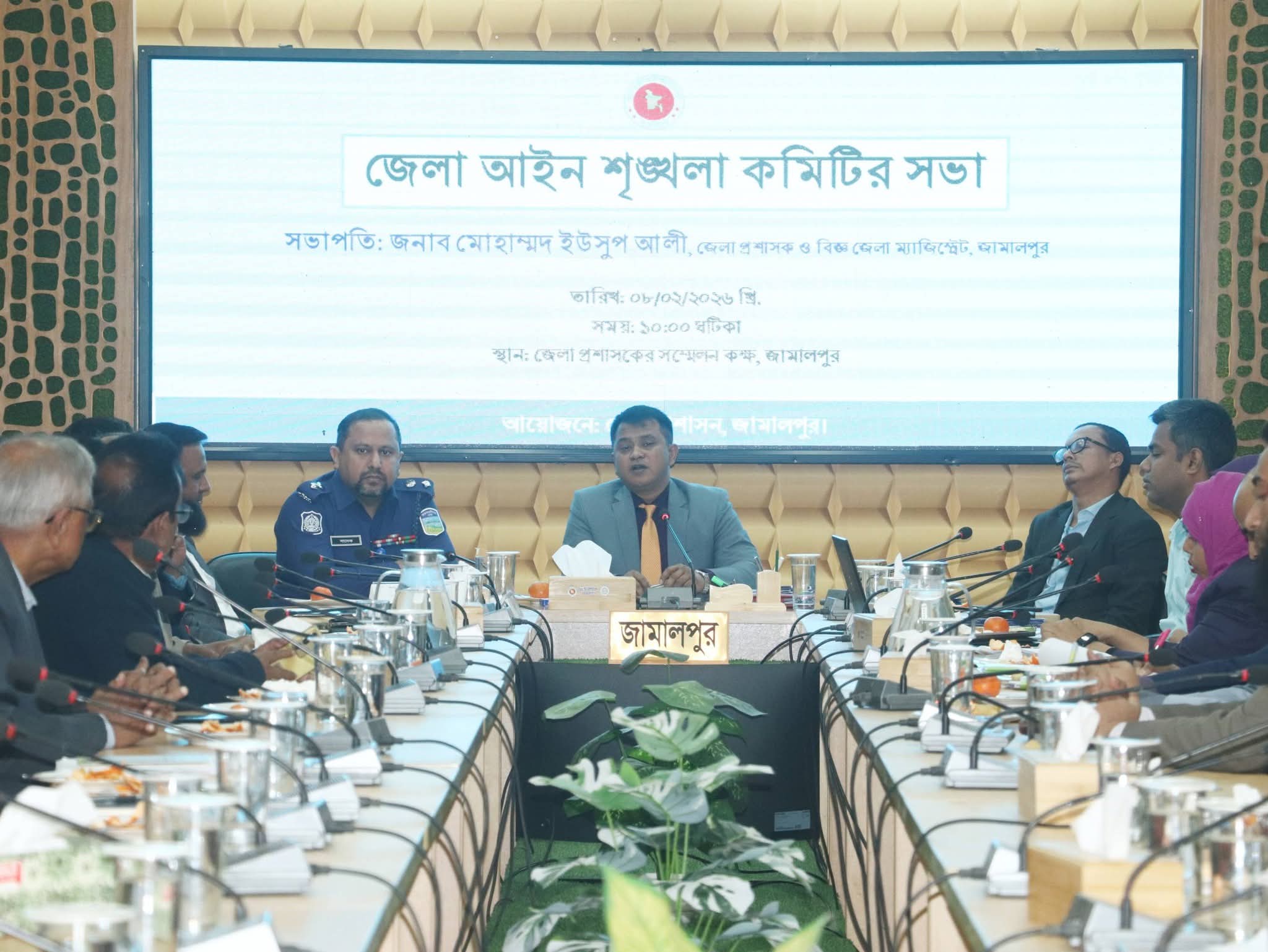 জামালপুর জেলার সার্বিক আইন-শৃঙ্খলা পরিস্থিতি পর্যালোচনা এবং জননিরাপত্তা নিশ্চিতকরণে গৃহীত কার্যক্রম আরও জোরদার করার লক্ষ্যে জেলা আইন-শৃঙ্খলা কমিটির নিয়মিত সভা অনুষ্ঠিত হয়েছে। অদ্য রবিবার (০৮ ফেব্রুয়ারি) সকাল ১০টায় জেলা প্রশাসনের আয়োজনে জামালপুর জেলা প্রশাসকের কার্যালয়ের সম্মেলন কক্ষে এ সভা অনুষ্ঠিত হয়। সভায় সভাপতিত্ব করেন জামালপুর জেলার সম্মানিত জেলা প্রশাসক ও বিজ্ঞ জেলা ম্যাজিস্ট্রেট জনাব মোঃ ইউসুপ আলী মহোদয়। সভায় বিশেষ অতিথি হিসেবে উপস্থিত ছিলেন জামালপুর জেলার সম্মানিত পুলিশ সুপার জনাব ড. চৌধুরী মোঃ যাবের সাদেক মহোদয়; জনাব ডাঃ মোঃ আজিজুল হক, সিভিল সার্জন, জামালপুর।