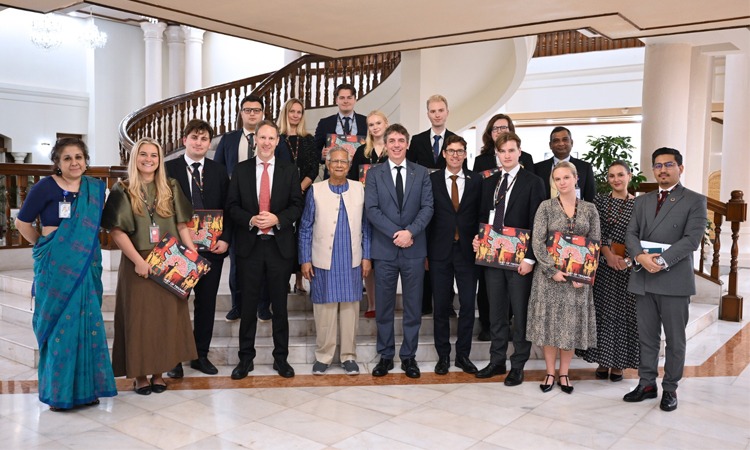 প্রধান উপদেষ্টা অধ্যাপক মুহাম্মদ ইউনূস বিশ্বের তরুণদের প্রতি আহ্বান জানিয়েছেন, তারা যেন আরও দূরদৃষ্টিসম্পন্ন ও সাহসী হয়ে নিজেদের স্বপ্নকে বাস্তবে রূপ দেয়। তিনি বলেন, তরুণদের মধ্যেই রয়েছে সমাজে অর্থবহ পরিবর্তন আনার শক্তি। শনিবার ঢাকায় রাষ্ট্রীয় অতিথি ভবন যমুনায় সুইডেন ও নরওয়ের তরুণ রাজনৈতিক কর্মীদের এক প্রতিনিধিদলের সঙ্গে সাক্ষাৎকালে তিনি এ আহ্বান জানান। অধ্যাপক ইউনূস বলেন, অনেকে বলে তরুণরা ভবিষ্যৎ, আমি বলি—তরুণরাই বর্তমান। তিনি আরও বলেন, বিশ্ব দ্রুত বদলে যাচ্ছে। আজকের তরুণরা আগের প্রজন্মের মতো নয়। প্রযুক্তির কারণে তোমরা এক নতুন প্রজাতির মানুষ-প্রায় ‘সুপারহিউম্যান’। শুধু নিজেকে প্রশ্ন করো, আমি কেমন একটি বিশ্ব গড়তে চাই? এরপর সেই লক্ষ্যে অঙ্গীকারবদ্ধ হও, কারণ তোমাদের হাতেই তা বাস্তবায়নের উপায় রয়েছে। সুইডেনের রাষ্ট্রদূত নিকোলাস উইকস ও নরওয়ের হকন আরাল্ড গুলব্রান্ডসেনের নেতৃত্বে প্রতিনিধি দলে ছিলেন সুইডেনের বিভিন্ন রাজনৈতিক দলের তরুণ নেতা—অ্যালিস ল্যান্ডারহোম (মডারেট ইয়ুথ পার্টি), আরিয়ান ত্বানা (সোশ্যাল ডেমোক্র্যাটিক ইয়ুথ পার্টি), অ্যান্টন হোল্মলুন্ড (লিবারেল ইয়ুথ পার্টি), ডেক্সটার ক্রোকস্টেড (সুইডেন ডেমোক্র্যাটস ইয়ুথ), হান্না লিন্ডকভিস্ট (গ্রিন ইয়ুথ পার্টি) এবং ম্যাক্স পেলিন (ক্রিশ্চিয়ান ডেমোক্র্যাটিক ইয়ুথ পার্টি)। নরওয়ের তরুণ নেতাদের মধ্যে ছিলেন ওদা রোহমে সিভের্তসেন (ইয়ং কনজারভেটিভস), লার্স মিকায়েল বারস্টাড লাভল্ড (প্রগ্রেস পার্টি ইয়ুথ) এবং সাইভার ক্লেভে কোলস্টাড (রেড ইয়ুথ)। প্রতিনিধিদের সঙ্গে ছিলেন জাতিসংঘ উন্নয়ন কর্মসূচির (ইউএনডিপি) বাংলাদেশের আবাসিক প্রতিনিধি স্টেফান লিলার, নর্ডিক অফিসের উপপরিচালক ক্যারোলিন আবরগ, কৌশলগত যোগাযোগ ও বহিঃসম্পর্ক বিশেষজ্ঞ কীর্তিজয় পাহাড়ি এবং যোগাযোগ বিশ্লেষক এমিলি আন্দ্রেসেন। সাক্ষাৎকালে প্রধান উপদেষ্টা তরুণ রাজনীতিকদের রাজনৈতিক দৃষ্টিভঙ্গি, অভিজ্ঞতা ও ভবিষ্যৎ পরিকল্পনা নিয়ে আলোচনা করেন। প্রতিনিধিরা জুলাই অভ্যুত্থান, তরুণদের অংশগ্রহণ, প্রাতিষ্ঠানিক সংস্কার এবং আসন্ন জাতীয় নির্বাচন নিয়ে তাঁর মতামত জানতে চান। অধ্যাপক ইউনূস বলেন, জুলাই ছিল এক ঐতিহাসিক মুহূর্ত-বিশেষ করে অসংখ্য তরুণ-তরুণী তখন এক ফ্যাসিবাদী শাসনের বিরুদ্ধে দাঁড়িয়েছিল। তোমরা এমন এক সময় এসেছো, যখন বাংলাদেশ ব্যাপক পরিবর্তনের মধ্য দিয়ে যাচ্ছে। আশা করি, তোমরা এখানকার তরুণদের সঙ্গে দেখা করবে এবং তাদের আকাঙ্ক্ষা জানবে। তিনি আরও বলেন, জুলাই বিপ্লবীরা প্রাতিষ্ঠানিক সংস্কারের দাবি তুলেছিল-বিশেষত সংবিধান সংশোধনের, যা তারা ফ্যাসিবাদের মূল কারণ হিসেবে দেখেছিল। আমরা ইতোমধ্যে কয়ে