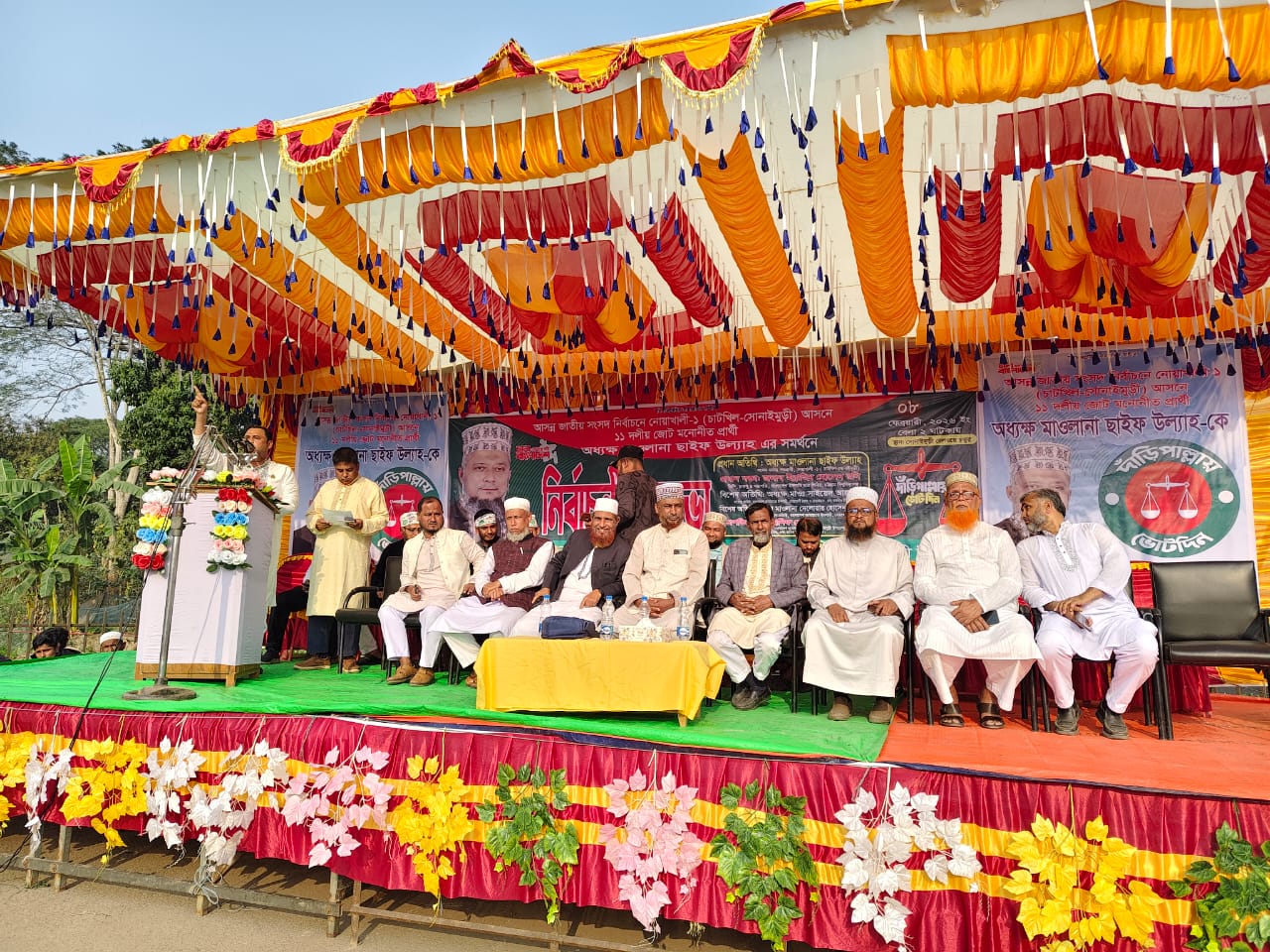 রবিবার বাংলাদেশ জামায়াতে ইসলামী সোনাইমুড়ী উপজেলা শাখার উদ্যোগে আয়োজিত নির্বাচনী জনসভা সোনাইমুড়ী রেলওয়ে চত্বরে অনুষ্ঠিত হয়েছে। জনসভায় প্রধান বক্তা হিসেবে উপস্থিত ছিলেন চট্টগ্রাম বিশ্ববিদ্যালয়ের নির্বাচিত ভিপি ইবরাহিম হোসেন রনি, তিনি উপস্থিত জনতার উদ্দেশ্যে বলেন, “ ২৪ এর গণ অভ্যুত্থানের পর অন্তর্বর্তী সরকারের আহ্বানে সকল  স্বজনপ্রীতি ও বৈষম্যমুক্ত বাংলাদেশ গড়ার জন?্য একমত তখনই বিএনপি নোট অব ডিসেন্টের নামে তালবাহানা শুরু করেন জনগনকে তার ন?্যায?্য অধিকার থেকে বঞ্চিত করতে।” তিনি আরো বলেন, “ বাংলাদেশের ছাত্র সমাজ  বিশ্ববিদ্যালয় গুলোতে ছাত্রশিবির প?্যানেলকে নির্বাচিত করে যেমন নিরাপত্তা লাভ করেছে তেমনি ভাবে ১২ তারিখ জামায়াত তথা এগারো দলীয় জোটকে নির্বাচিত করে নিরাপত্তার পাশাপাশি অর্থনৈতিক মুক্তি ও চাঁদাবাজ মুক্ত বাংলাদেশ পাবে” সভায় প্রধান অতিথি হিসেবে উপস্থিত ছিলেন বাংলাদেশ জামায়াতে ইসলামী মনোনীত নোয়াখালী -০১ (সোনাইমুড়ী- চাটখিল) আসনের সংসদ সদস্য পদপ্রার্থী অধ্যক্ষ মাওলানা  মোঃ ছাইফ উল্লাহ । তিনি তার বক্তৃতায় সোনাইমুড়ী জনগণের জন্য তার ভাবনা তুলে ধরেন। তিনি বলেন, “ আপনারা আমাকে নির্বাচিত করলে আমি সোনাইমুড়ীর রাস্তাঘাটের উন্নয়ন, সোনাইমুড়ী উপজেলা স্বাস্থ্য কমপ্লেক্সকে ১০০ শয?্যায় উন্নীত করবো , সকল ইউনিয়ন স্বাস্থ্য কেন্দ্রগুলোকে আধুনিকায়ন ও সেবার মান বৃদ্ধি করবো, চাঁদাবাজ মুক্ত ও দখলদার মুক্ত আধুনিক উপজেলায় উন্নীত করবো  অন্যান্যের মাঝে উপস্থিত ছিলেন জেলা জামায়াতের নায়েবে আমির অধ্যক্ষ মাওলানা সাইয়েদ আহমদ, জেলা সহ সেক্রেটারি মাওলানা দেলোওয়ার হোসেন, ইসলামী ছাত্রশিবিরের জেলা সভাপতি দাউদুল ইসলাম সহ উপজেলার সাবেক ভাইস চেয়ারম্যান সাহাব উদ্দিনের পরিচালনায় জনসভায় সভাপতিত্ব করেন উপজেলা জামায়াতের আমির হানিফ মোল্লা। সভাপতির বক্তব্যের পর বিশাল গণ মিছিল অনুষ্ঠিত হয় যা সোনাইমুড়ীর বাজার থেকে শুরু করে বাইপাস – চৌরাস্তা হয়ে রেল স্টেশন চত্বরে এসে শেষ হয়।