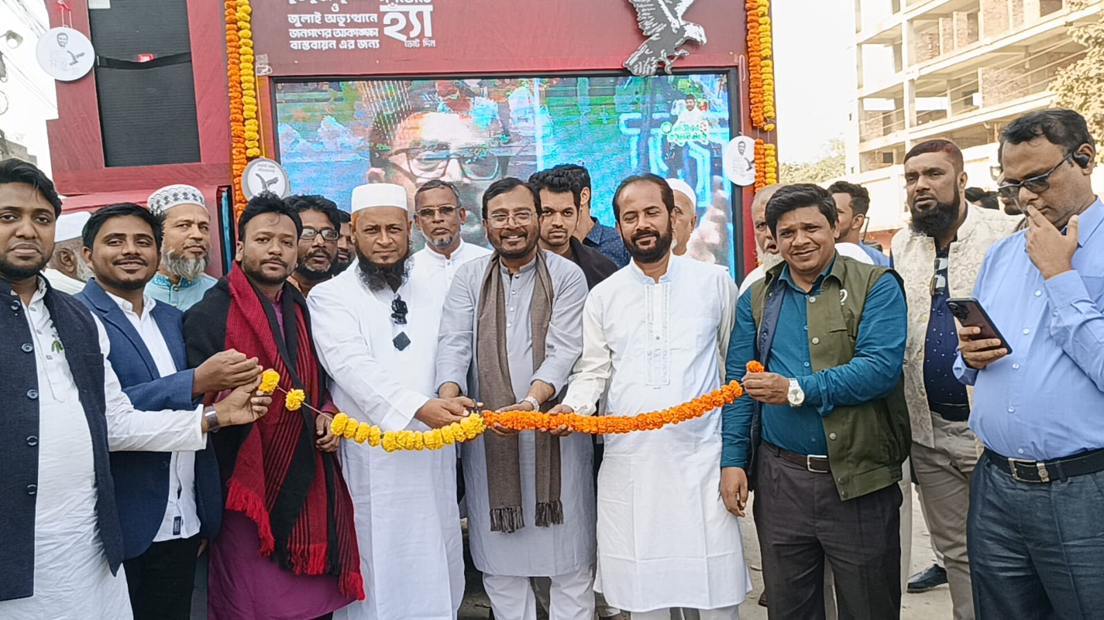 ফেনী সদর- ০২ আসনে ১১ দলীয় জোটের ঐক্য ‘ঐক্যবদ্ধ বাংলাদেশ’ এর ঈগল প্রতীকের প্রার্থী ও এবি পার্টির চেয়ারম্যান মজিবুর রহমান মঞ্জুর নির্বাচনী ডিজিটাল প্রচারণার ‘ক্যারাভ্যান’ উদ্বোধন করা হয়েছে। দুপুরে শহরের খাজুরিয়াতে মঞ্জুর প্রধান নির্বাচনী অফিসের সামনে ক্যারাভ্যানের উদ্বোধন করা হয়। এতে প্রচারণায় নতুন মাত্রা পাবে বলে আশা করছেন মজিবুর রহমান মঞ্জু। মজিবুর রহমান মঞ্জু বলেন,নির্বাচনের পরিবেশ নষ্ট করার জন্য কিছু কুচক্রী নানা ষড়যন্ত্র করছে। প্রশাসনকে এসব ব্যাপারে শক্ত অবস্থান নেয়ার আহবান জানান তিনি। এ সময় উদ্বোধনী অনুষ্ঠানে জামায়াতের জেলা আমীর মুফতি আব্দুল হান্নান, নির্বাচন পরিচালনা কমিটির আহবায়ক আব্দুল মালেক,সদস্য সচিব আ.ন.ম আব্দুর রহিম, এনসিপির কেন্দ্রীয় সংগঠক আজিজুর রহমান রিজভী, মনসুর আব্দুল্লাহ, জেলা আহবায়ক জাহিদুল ইসলাম সৈকত,সদস্য সচিব শাহ ওয়ালী উল্যাহ মানিক ও ছাত্র শিবির শহর শাখার সেক্রেটারি শফিকুল ইসলামসহ ১১ দলীয় জোটের নেতৃবৃন্দ উপস্থিত ছিলেন।