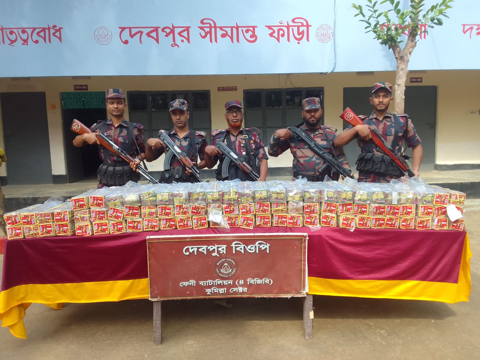 গতকাল গোপন সংবাদ এর ভিতিতে ফেনী ব্যাটালিয়ন (৪ বিজিবি) এর অধীনস্থ ছাগলনাইয়া, দেবপুর এবং খেজুরিয়া বিওপির নিয়মিত/বিশেষ টহলদল কর্তৃক ফেনী জেলার ছাগলনাইয়া ও ফুলগাজী উপজেলার সীমান্ত এলাকায় চোরাচালান বিরোধী অভিযান পরিচালনা করে ০২টি সিএনজিসহ বিপুল পরিমান ভারতীয় আতশবাঁজি এবং ভারতীয় বিভিন্ন প্রকার ঔষধ জব্দ করতে সক্ষম হয়। জব্দকৃত মালামালের আনুমানিক বাজার মূল্য ৩৬ লক্ষ ১১ হাজার ৬৯৪ টাকা। জব্দকৃত মালামাল পরবর্তী কার্যক্রমের জন্য স্থানীয় কাস্টমস অফিসে জমা করার কার্যক্রম প্রক্রিয়াধীন। সীমান্তে নিরাপত্তা রক্ষা, মাদকের অবৈধ পাচার ও চোরাচালান প্রতিরোধসহ অবৈধ অনুপ্রবেশ রোধে ফেনী ব্যাটালিয়ন (৪ বিজিবি) কর্তৃক আভিযানিক কর্মকান্ড ও গোয়েন্দা তৎপরতা অব্যাহত রয়েছে।