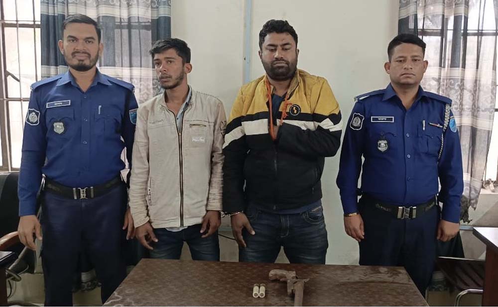 ফরিদপুরের মধুখালী উপজেলার ডুমাইন ইউনিয়নের নিশ্চিন্তপুর গ্রামে দেশীয় আগ্নেয়াস্ত্রসহ রাজবাড়ী জেলার কুখ্যাত মাদক সম্রাট ও শীর্ষ সন্ত্রাসী মাধব ঘোষকে তার সহযোগীসহ গ্রেপ্তার করেছে পুলিশ। এ ঘটনায় এলাকায় ব্যাপক চাঞ্চল্যের সৃষ্টি হয়েছে। গ্রেপ্তারকৃতরা হলো রাজবাড়ী জেলার আখশুকনা গ্রামের মনমথ নাথ ঘোষের ছেলে মাধব ঘোষ (৩৬) এবং একই গ্রামের অরবিন্দু শিকদারের ছেলে অসীম শিকদার (২১)। স্থানীয় সূত্রে জানা যায়, ২২ ফেব্রুয়ারি রাত আনুমানিক ১০টার দিকে নিশ্চিন্তপুর গ্রামের গোলাম নবীর কাঠালবাগানে সন্দেহজনকভাবে অবস্থানকালে এলাকাবাসী তাদের আটক করে। পরে মধুখালী থানা পুলিশকে খবর দেওয়া হলে সাব-ইন্সপেক্টর কামরুজ্জামান ও সাব-ইন্সপেক্টর মোক্তার হোসেন সঙ্গীয় ফোর্সসহ ঘটনাস্থলে পৌঁছান। পুলিশ জানায়, আটক দু’জনের কাছ থেকে একটি দেশীয় তৈরি পাইপগান ও দুটি সীসার কার্তুজ উদ্ধার করা হয়েছে। মধুখালী থানার অফিসার ইনচার্জ ফকির মোঃ তাইজুর রহমান জানান, “মাধব ঘোষ রাজবাড়ী জেলার অপরাধ জগতের পরিচিত মুখ। তার বিরুদ্ধে মাদক, অস্ত্র ও সন্ত্রাসী কর্মকান্ডের একাধিক মামলা রয়েছে। দীর্ঘদিন ধরে তিনি আইনশৃঙ্খলা বাহিনীর নজরদারিতে ছিলেন।” পুলিশ আরও জানায়, গ্রেপ্তারকৃতদের ২৩ ফেব্রুয়ারি বিকাল ৩টায় ফরিদপুর বিজ্ঞ আদালতে প্রেরণ করা হয়েছে। স্থানীয়দের মতে, এ ধরনের কুখ্যাত সন্ত্রাসীর গ্রেপ্তারে এলাকায় স্বস্তি ফিরে এসেছে। আইনশৃঙ্খলা বাহিনী জানিয়েছে, অপরাধীদের বিরুদ্ধে কঠোর অবস্থান অব্যাহত থাকবে।