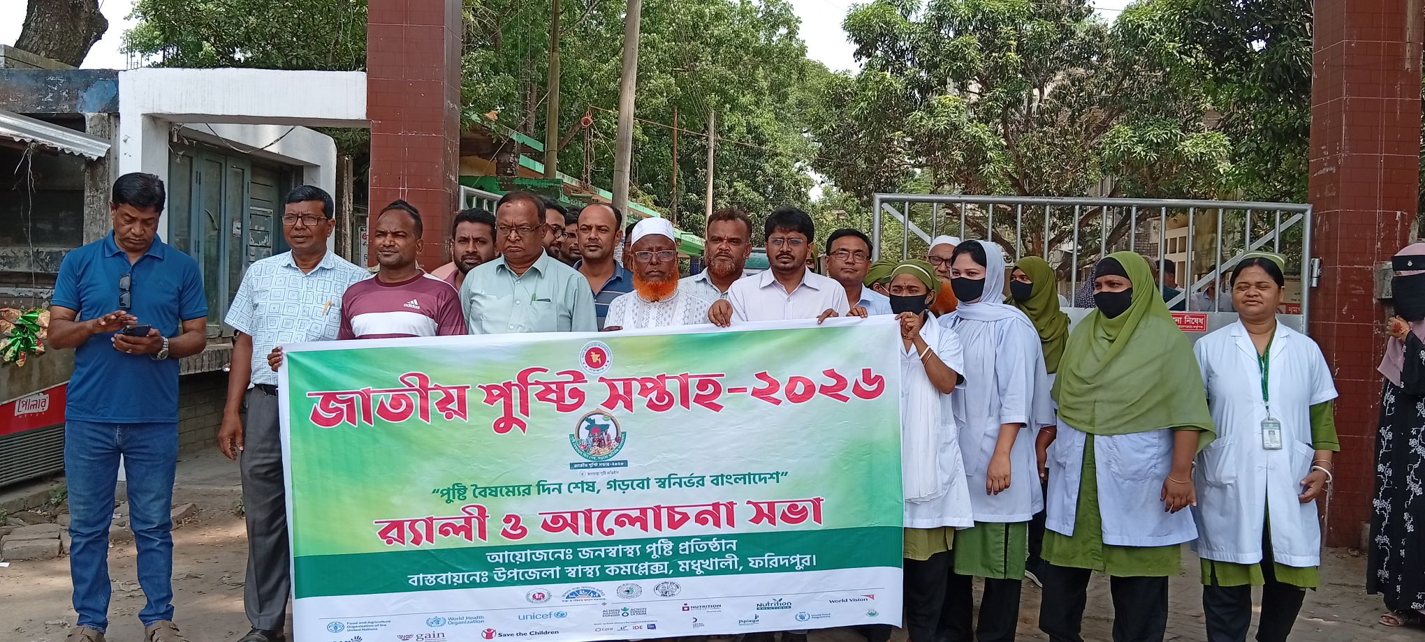 পুষ্টি বৈষম্যের দিন শেষ, গড়বো স্বনির্ভর বাংলাদেশ- এই প্রতিপাদ্যকে সামনে রেখে মধুখালীতে জাতীয় পুষ্টি সপ্তাহ উপলক্ষে র্যালী ও আলোচনা সভা অনুষ্ঠিত হয়েছে । বৃহস্পতিবার ২৩ এপ্রিল বেলা ১১ টায় উপজেলা স্বাস্থ্য কমপ্লেক্স হল রুমে, পুষ্টি প্রতিষ্ঠান ও উপজেলা স্বাস্থ্য কমপ্লেক্সের আয়োজনে এ আলোচনা সভায় সভাপতিত্ব করেন মধুখালী উপজেলা নির্বাহী কর্মকর্তা রওশনা জাহান। ডা. তানভীর আহম্মেদ এর সঞ্চালনায় অন্যান্যর মধ্যে বক্তব্য রাখেন উপজেলা স্বাস্থ্য ও পরিবার পরিকল্পনা.কর্মকর্তা (ভারপ্রাপ্ত) ডা. কবির সরদার, পৌর জামায়াতে ইসলামের সেক্রেটারি, মোঃ খলিলুর রহমান। উপস্থিত ছিলেন পৌর কৃষক দলের আহবায়ক নূরনবী মিয়া,মধুখালী উপজেলা বিএনপি সাবেক সভাপতি মোঃ রাকিব হোসেন ইরান,মধুখালী উপজেলা স্বেচ্ছাসেবক দলের সদস্য সচিব জহিরুল ইসলাম লিটন, সাংবাদিক, উপজেলা কমপ্লেক্সের চিকিৎসক সহ অন্যান্য কর্মকর্তাবৃন্দ। আলোচনা সভায় অনুষ্ঠানের সদস্য সচিব ও ভারপ্রাপ্ত কর্মকর্তা ডা. কবির সরদার বলেন, আমাদের বাড়ির আঙ্গিনায় যে সকল দেশীয় ফল ও শাক সবজি জন্মে সেখান থেকে আমরা যথেষ্ট পুষ্টি সমৃদ্ধ খাদ্য পেতে পারি, তিনি দেশীয় ফলমূল শাকসবজির প্রতি গুরুত্ব প্রদানের জন্য সকলের প্রতি আহ্বান জানান। উপজেলা নির্বাহী কর্মকর্তা রওশনা জাহান বলেন, আমাদের উৎপাদিত দেশীয় শাকসবজি রান্নার ক্ষেত্রে সঠিক নিয়ম জানতে হবে, তিনি আরও বলেন বিদেশি ফলমূলের থেকে আমরা অতি সহজেই দেশীয় প্রজাতির ফলমূল থেকে পুষ্টির সঠিক গুণগতমান পেতে পারি, তাছাড়া দেশীয় ফল মূল শাক-সবজি আমরা সহজেই পেতে পারি।