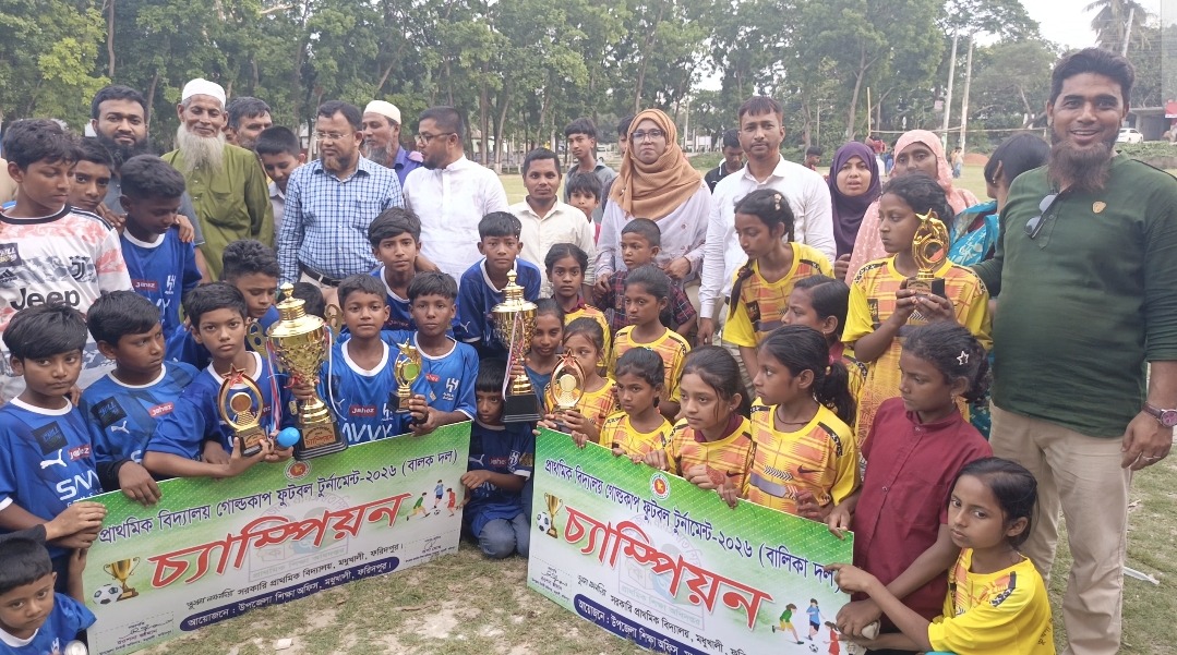 ফরিদপুরের মধুখালীতে ২৭শে এপ্রিল সোমবার বিকালে মধুখালী পাইলট উচ্চ বিদ্যালয় মাঠে উপজেলা প্রশাসন ও উপজেলা  প্রাথমিক শিক্ষা অফিসের আয়োজনে প্রাথমিক বিদ্যালয় গোল্ড কাপ ফুটবল টুর্নামেন্ট ২০২৬-এর বালক ও বালিকা বিভাগের ফাইনাল খেলা এবং পুরস্কার বিতরণ অনুষ্ঠান অনুষ্ঠিত হয়েছে। মধুখালী উপজেলা প্রাথমিক শিক্ষা অফিসার (ভারপ্রাপ্ত) রুপা ঘোষের সভাপতিত্বে অনুষ্ঠানে প্রধান অতিথি হিসেবে উপস্থিত ছিলেন মধুখালী উপজেলা নির্বাহী অফিসার রওশনা জাহান। এ সময় উপস্থিত ছিলেন বাংলাদেশ প্রাথমিক শিক্ষক সমিতি মধুখালী উপজেলা শাখার সভাপতি মোঃ সোলায়মান মোল্লা, সাধারণ সম্পাদক মোঃ খায়রুজ্জামান মিয়া এবং উদ্দীপন বিদ্যানিকেতন সরকারি প্রাথমিক বিদ্যালয়ের বিভাগীয় পুরস্কার প্রাপ্ত প্রধান শিক্ষক শারমীম আখতার ও ভুষনা সরকারি প্রাথমিক বিদ্যালয়ের সহকারি শিক্ষক এবং বাংলাদেশ প্রাথমিক শিক্ষক সমিতি মধুখালী উপজেলা শাখার সাবেক  সাধারণ সম্পাদক মোঃ হাবিবুর রহমান হাবিব, ডুমাইন বালক সরকারি প্রাথমিক বিদ্যালয়ের ভারপ্রাপ্ত প্রধান শিক্ষক মোঃ আনিসুর রহমান সহ উপজেলার বিভিন্ন প্রাথমিক বিদ্যালয়ের প্রধান শিক্ষক, সহকারী শিক্ষক-শিক্ষিকা বৃন্দ প্রমুখ । খেলায় বালক বিভাগে ডুমাইন সরকারি প্রাথমিক বিদ্যালয়কে ৩-০ গোলে পরাজিত করে ভুষনা সরকারি প্রাথমিক বিদ্যালয় চ্যাম্পিয়ন হওয়ার গৌরব অর্জন করে। অপরদিকে বালিকা বিভাগে মনোহরদিয়া সরকারি প্রাথমিক বিদ্যালয়কে ২-১ গোলে হারিয়ে ভুষনা সরকারি প্রাথমিক বিদ্যালয় চ্যাম্পিয়ন হয়। খেলা শেষে বিজয়ীদের মাঝে পুরস্কার বিতরণ করা হয় এবং অংশগ্রহণকারী শিক্ষার্থীদের উৎসাহ ও ক্রীড়া চর্চা অব্যাহত রাখার আহ্বান জানানো হয় এবং বিজয়ীদল জেলায় অংশগ্রহন করবে বলে জানা যায় ।