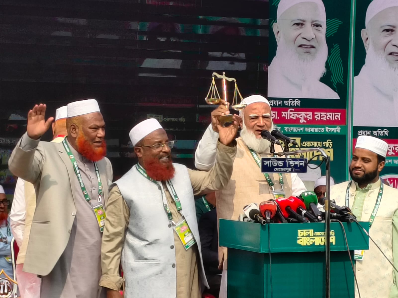 চাঁদাবাজি ও দুর্নীতির বিরুদ্ধে কঠোর অবস্থানের কথা জানিয়ে তিনি বলেন, আমরা চাঁদাবাজি করব না, দুর্নীতি করব না এবং দুর্নীতিকে প্রশ্রয়ও দেব না। মানুষ ইতোমধ্যে সিদ্ধান্ত নিয়ে ফেলেছে কাকে ভোট দেবে। বেকার ভাতা প্রসঙ্গে ডা. শফিকুর রহমান বলেন, আমরা বেকার ভাতা দেব না—রাষ্ট্রের টাকা থাকলেও না। ভাতা দিলে বেকারত্ব কমে না, বরং বাড়ে। আমরা ভাতা নয়, কাজ দেব। তরুণদের শক্তিতেই দেশ এগিয়ে যাবে। সেই লক্ষ্যে যুব সমাজকে প্রস্তুত করা হচ্ছে। জনসভা শেষে তিনি মেহেরপুরের দুই আসনের প্রার্থীদের হাতে দলীয় নির্বাচনি প্রতীক ‘দাঁড়িপাল্লা’ তুলে দেন। এ সময় উপস্থিত নেতাকর্মী ও সাধারণ মানুষের কাছে ইনসাফভিত্তিক রাষ্ট্র গঠনে সহযোগিতা কামনা করেন। এই জনসভায় জামায়াতে ইসলামী ও ১১ দলীয় জোটের নেতাকর্মীরা অংশ নেন এবং ব্যাপক জনসমাগম দেখা যায়।