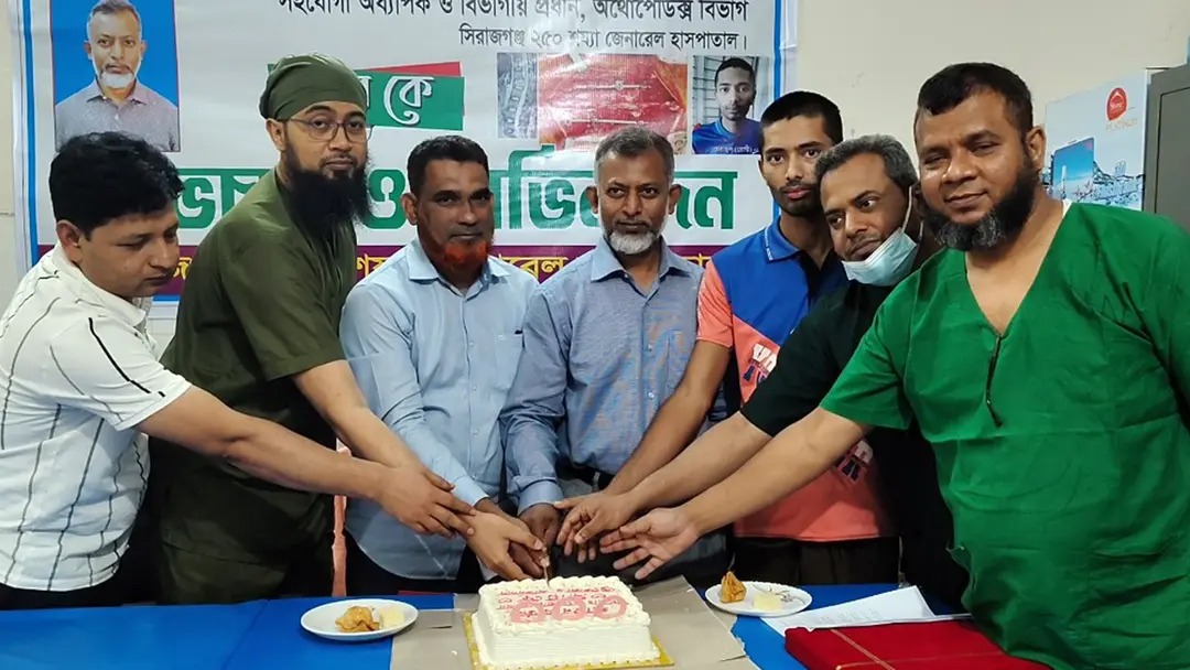 সিরাজগঞ্জের ২৫০ শয্যা জেনারেল হাসপাতালে প্রথমবার সফলভাবে সম্পন্ন হয়েছে মেরুদণ্ডের জটিল অপারেশন। এই সফলতায় হাসপাতাল কর্তৃপক্ষ রোগীকে সঙ্গে নিয়ে কেক কেটে উদযাপন করেন এবং অপারেশন টিমকে সম্মাননা জানিয়েছে। স্বল্প খরচে করা এই অপারেশনের মাধ্যমে হাঁটতে না পারা এক যুবক এখন স্বাভাবিকভাবে হাঁটতে ও বসতে পারছেন।