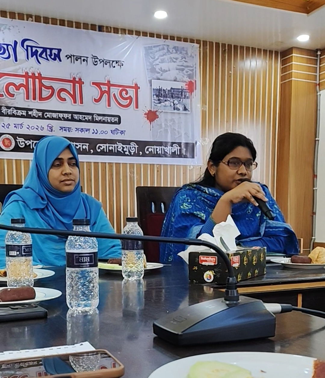 সোনাইমুড়ি উপজেলা প্রশাসনের আয়োজনে সোনাইমুড়িতে ২৫ শে মার্চ কালো রাত ও গণহত্যা দিবস পালিত হয়েছে, ২৫ শে মার্চ বাঙালির জাতির জন্য এক কালো রাত্রি, পাকিস্তানি হানাদার বাহিনী অতর্কিতভাবে বাঙালি জাতির উপর ঝাঁপিয়ে পড়ে লক্ষ লক্ষ বাঙালিকে হত্যা করে সেই পচিশে মার্চ বয়াল কালো রাত, এই ২৫ শে মার্চ কালো রাতের তাৎপর্য বিশ্লেষণের জন্য আজকে সোনাইমুড়ী উপজেলা বীর মুক্তিযোদ্ধা বীর বিক্রম শহীদ মুজাফফর আহমদ মিলনায়তনে উপজেলা নির্বাহী কর্মকর্তা নাসরিন আক্তারের সভাপতিত্বে,জহিরুল ইসলামের সঞ্চালনায় বক্তব্য রাখেন দ্বিন আলজান্নাত সোনাইমুড়ী উপজেলা ভূমিক কর্মকর্তা, সোনাইমুড়ী উপজেলা প্রেসক্লাবের সভাপতি মাকসুদ আলম, ও বিভিন্ন ডিপার্টমেন্টের প্রধান অনেকেই আলোচনায় অংশগ্রহণ করেন, আলোচনা সবার বক্তব্যে ২৫ শে মার্চ কালো রাত স্মরণে শুভ রাখেন, তৎকালীন সময় পাকিস্তানের এই বর্বরতার জন্য বিনা প্রস্তাব পেশ করেন, তারপরেই বাংলাদেশে রাজাকারের মুখোশ উন্মোচন করে বিভিন্ন বক্তার বক্তব্য উঠে আসে তারা বাংলাদেশের শত্রু জাতির শত্রু, তারা কখনো বাংলাদেশ চাই নাই এবং তাদের সহযোগিতায় ২ লক্ষ মা বোন সম্ভব হারিয়ে স্বাধীনতা অর্জন করেছেন।
